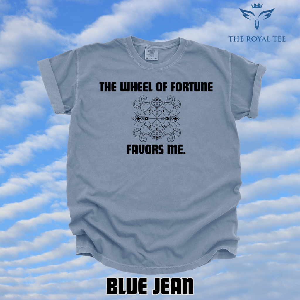 This Royal Tee is a walking affirmation of good fortune created for those who appreciate the energy of The Wheel of Fortune tarot card.